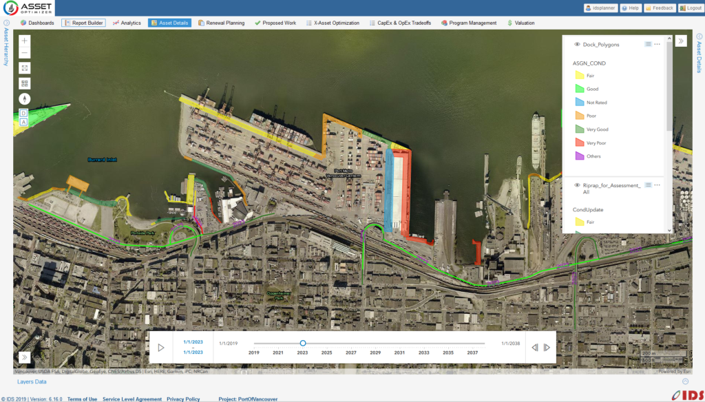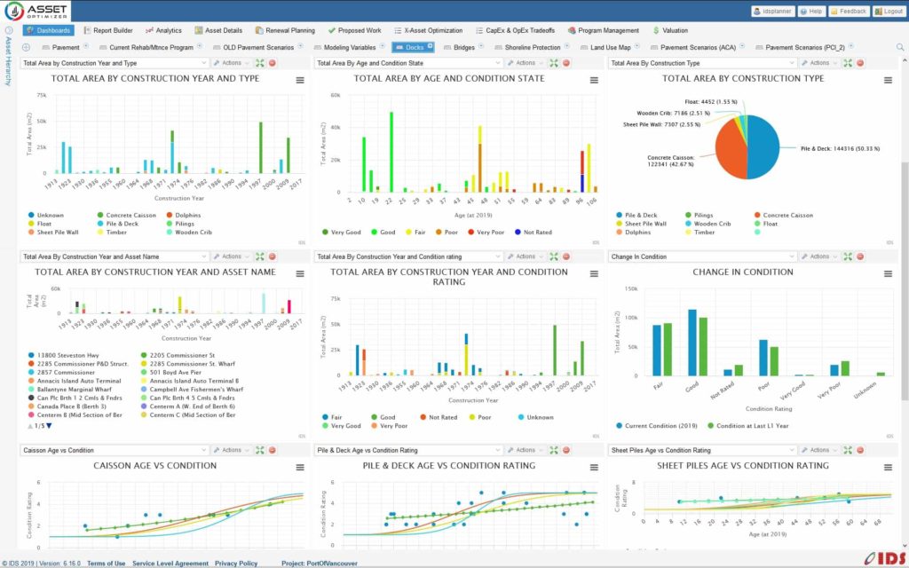 IDS Asset Optimizer software was used to enable the Vancouver Port Authority to develop optimized risk-based 20-year capital plans for the Port’s critical infrastructure assets, including pavement, dock structures, and shoreline protection assets.