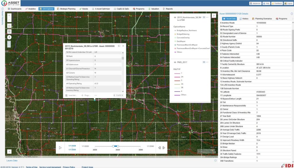 With increasing challenges of ageing and deterioration of bridges, climbing maintenance backlogs, and insufficient investments, optimization of long-range bridge improvement programs has been a high priority for Iowa DOT. Bridge programming decisions need to focus on optimizing budget allocation and investment strategies to meet organizational objectives and performance metrics. Programs need to be designed to ensure the safety and adequacy of managed bridge inventories, reduce risks and lifecycle costs, and maximize return on investment. Iowa DOT required a unique solution that can support detailed analysis of the relationship between funding levels and performance and risk measures of the bridge inventory, and the ability to optimize project selections to ensure that scarce funding resources are invested on the right project at the right time.