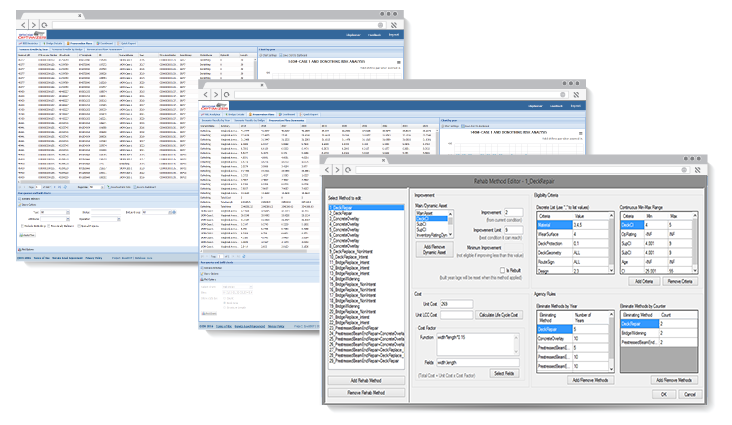 Bridge Optimizer™ implements the industry’s most advanced algorithms to support optimal risk-based system-level preservation planning of large inventories with tens of thousands of bridges. The algorithms include inductive multi-variate deterioration modeling, quantitative and dynamic risk assessment and asset prioritization, and multi-objective optimization. Bridge Optimizer™ offers a rich feature set unparalleled by any other software in the market today.